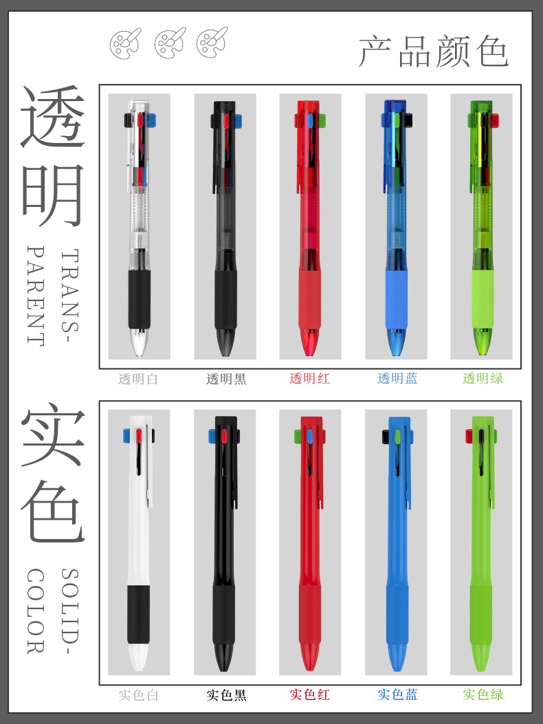 スポット多機能四色ボールペン透明カラー広告ペンロゴ多色押しプラスチックペンメーカー