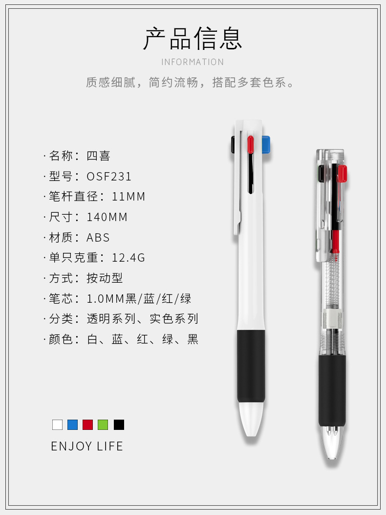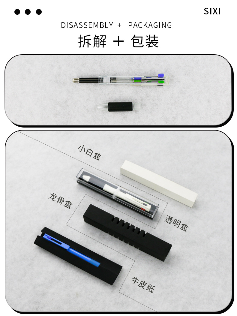 四喜創意透明プラスチックは多色ボールペンを押してlogo多機能原筆広告ペンをカスタマイズします。
