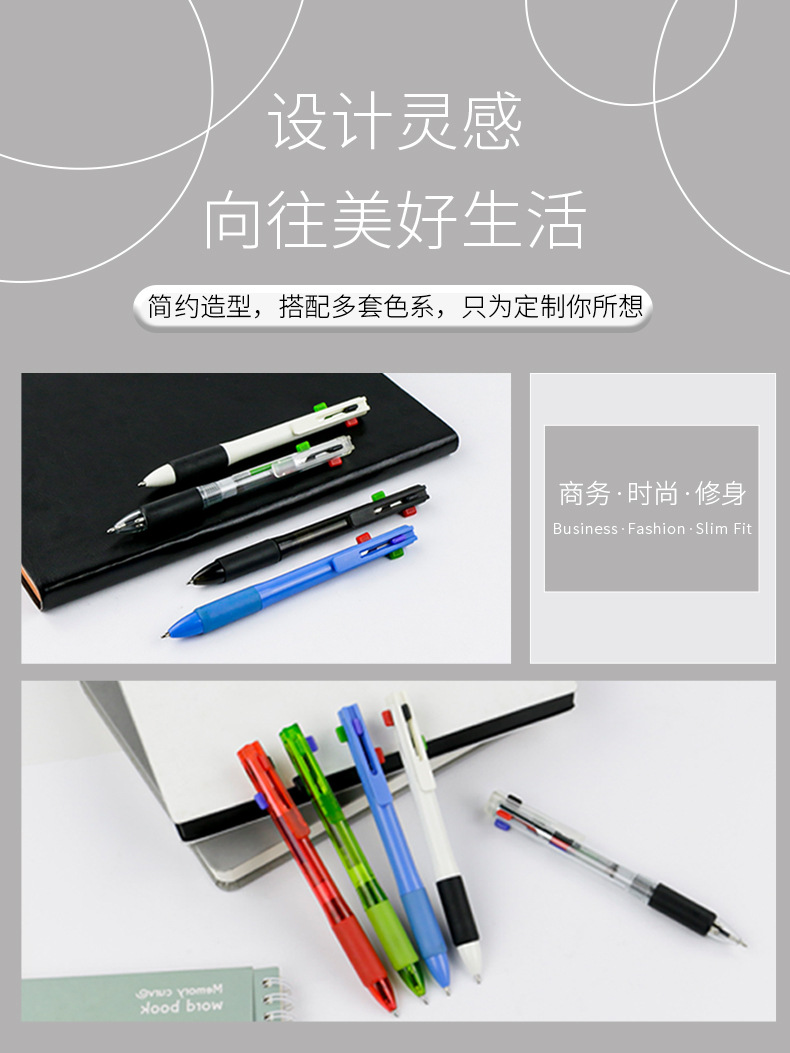 多色ペン三色プラスチックペン広告多色ボールペンメーカーは色番号ロゴで作ることができる