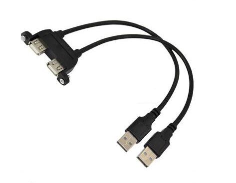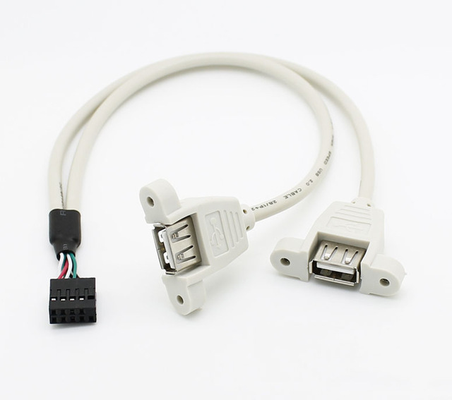主板9针转双口USB转接线,采用 28AWG粗线,做工精良,性能稳定,USB母口端带螺丝孔,两螺丝孔间间距约为30mm,可固定于机箱挡板