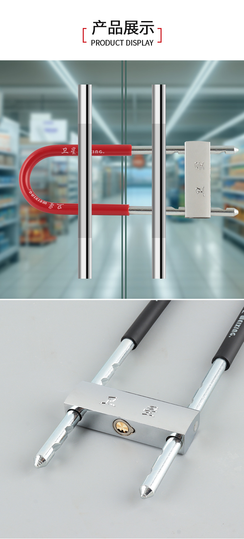 型ドアロック延長型店ロングロックガラス商用耐久ロッド太くロックダブルドアロックUドアドアドアU盗難防止