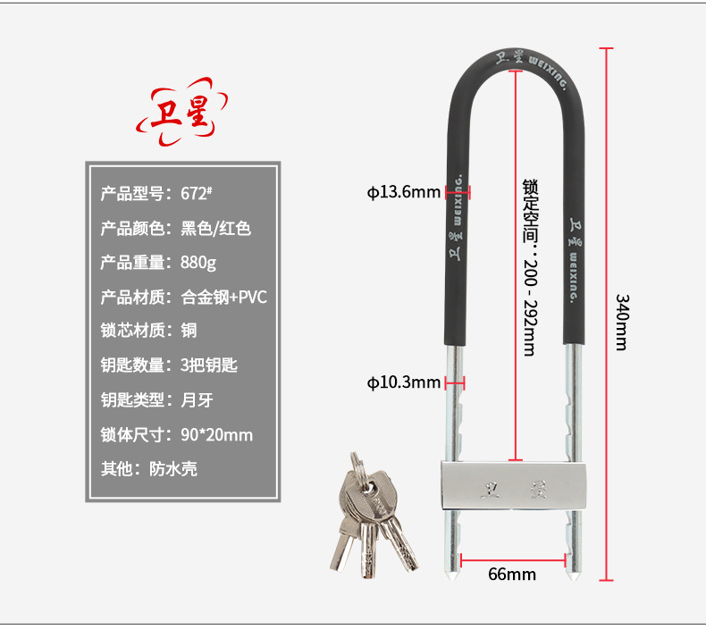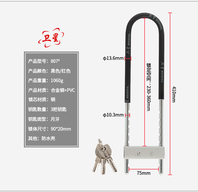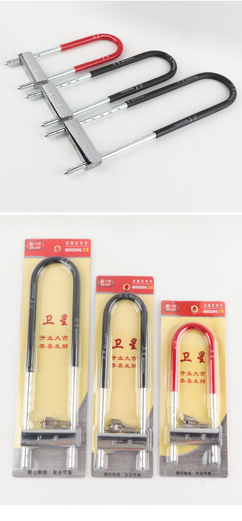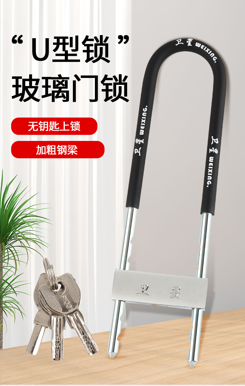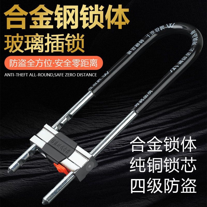 玻璃门锁双开U型锁商铺门锁店面锁摩托车锁加长加粗锁具配件