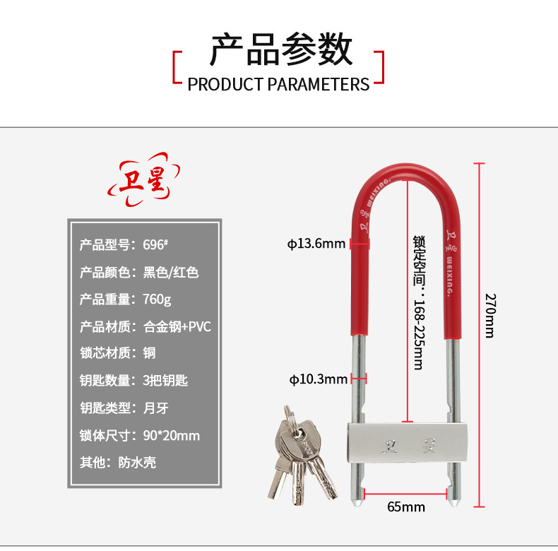 玻璃门锁u形锁店铺门挂锁防水防锈锁电动车双插防盗十字锁芯U型锁