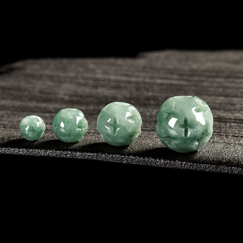 天然a品翡翠豆緑玉玉散珠彫刻模様丸珠ブレスレットネックレス手作りdiy材料卸売り