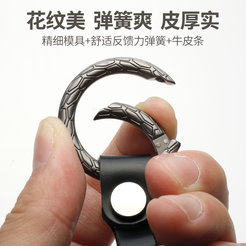 創意的な個性の暗い黒色の気質の灰色の皮の条のスプリングリングの金属の自動車のキーホルダーは男性の金の馬蹄の環の鎖を掛けます。