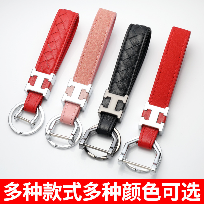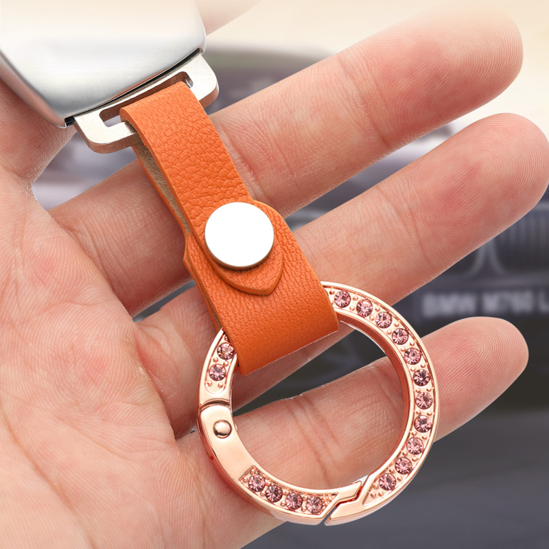 羊皮条ステンレスボタン合金バネリング自動車キーホルダーストラップ男女タイプオレンジ緑米灰黒銀色