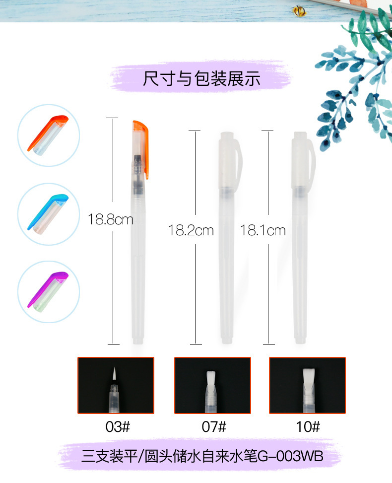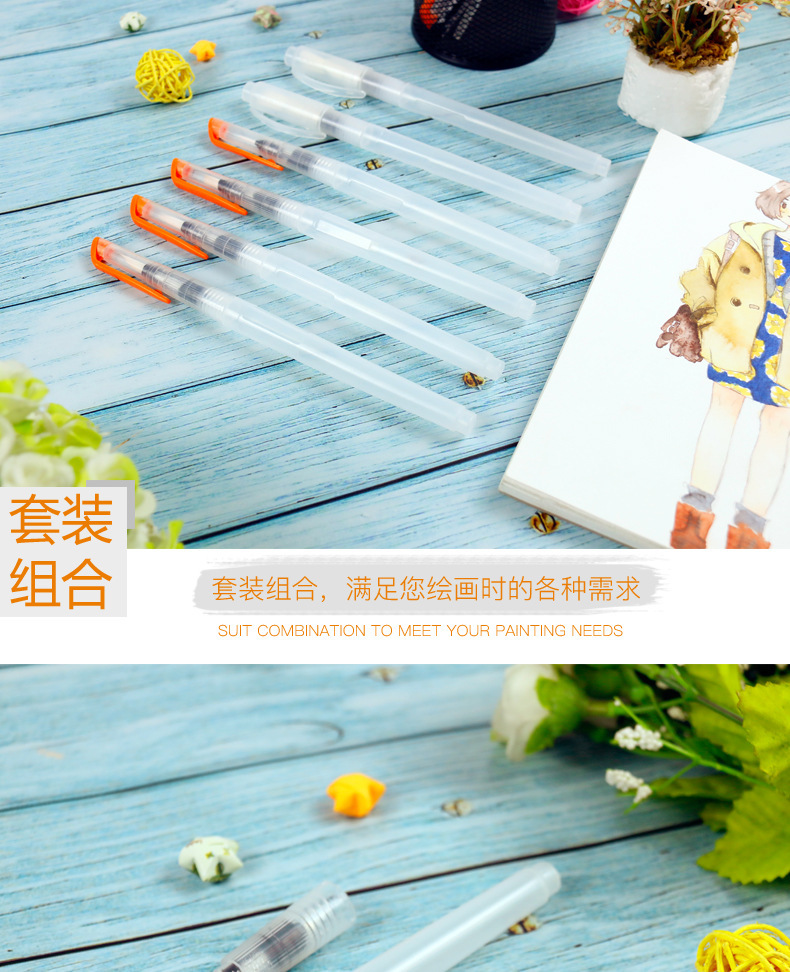 販促3/6本水道ペンセットナイロン毛貯水毛筆ソフト毛水彩画水溶彩鉛絵筆
