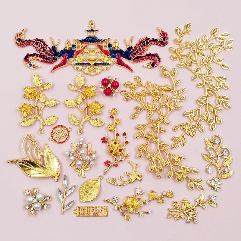 合金diyアクセサリー古風手作り漢服髪飾り冠流蘇ペンダント枝葉diyアクセサリー材料