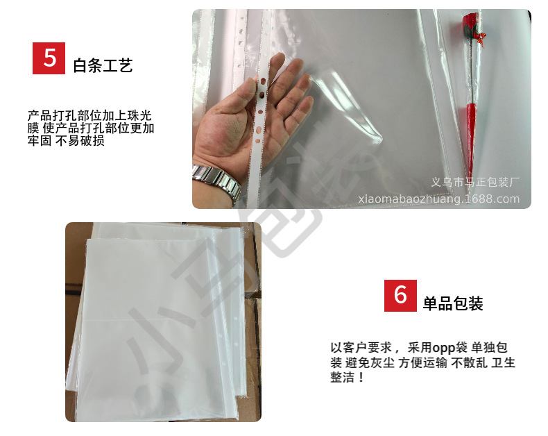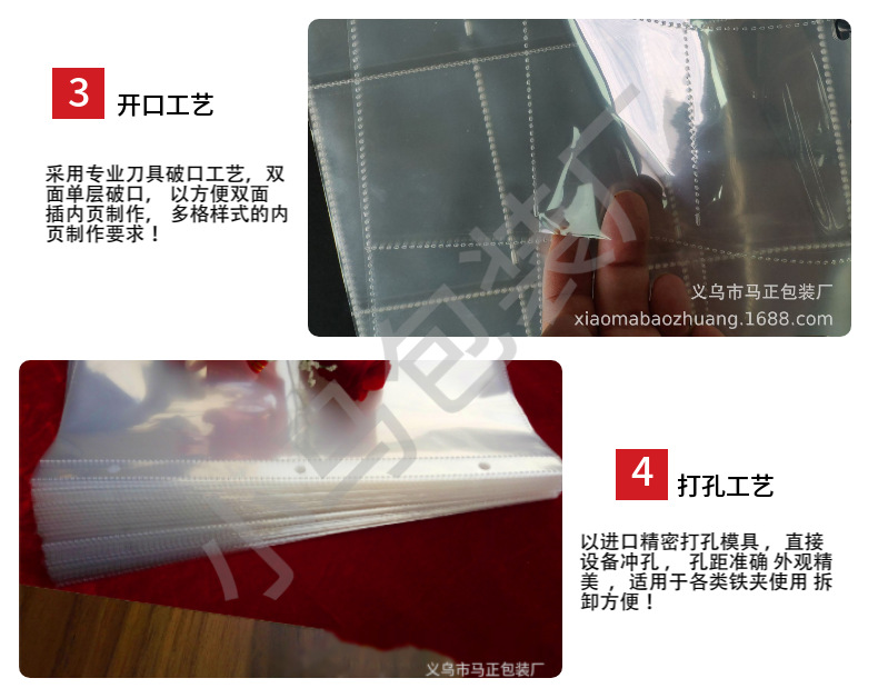メーカー直販高透明多規格サイズ11穴4穴opp白条袋サンプルブック内ページバインダー資料ブック