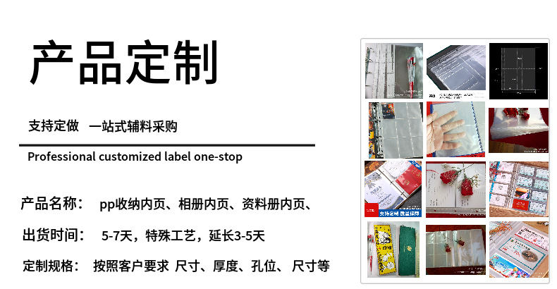専門生産ppアルバムの中のページのルーズリーフは芯の3穴の4穴の資料冊のカード袋の中のページです。