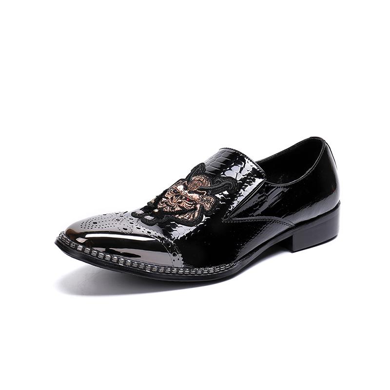 光沢のあるレザーファッションカジュアルレザーシューズトレンディなメンズローヒールスリッポントレンディなカジュアルレザーシューズパテントレザーメンズシューズ刺繍入りビーニーシューズ男性用