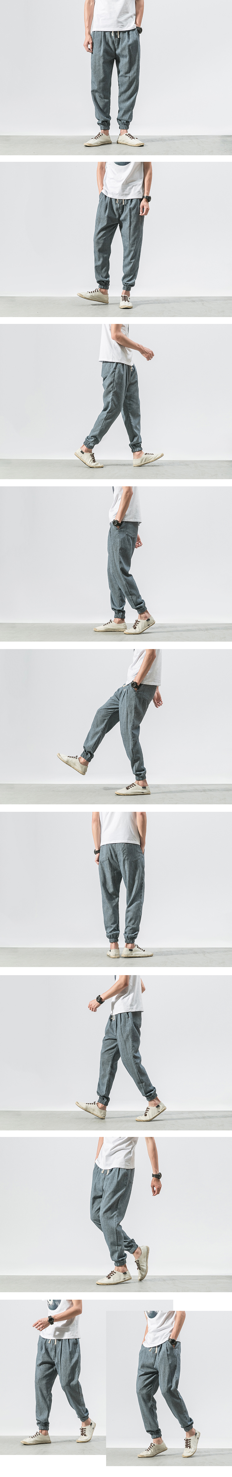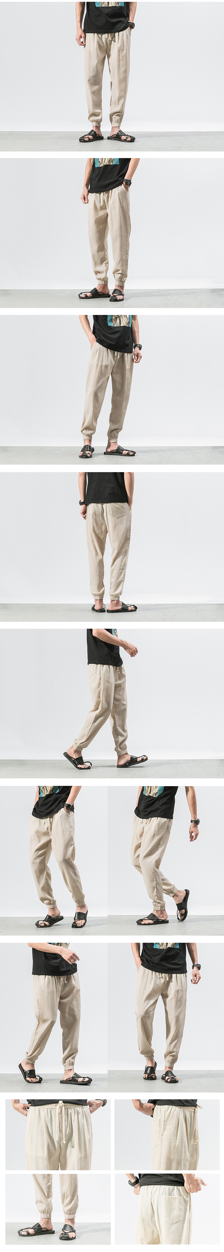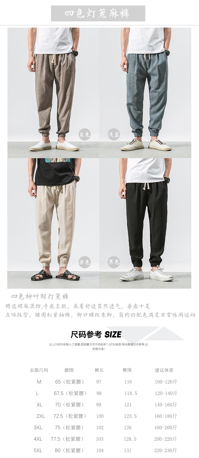 外国貿易の新型の卸売りの男性の中国風の大きいサイズの香港風のゆったりしている綿の麻の束の足のズボンの亜麻の綿の麻の小さい足のズボン