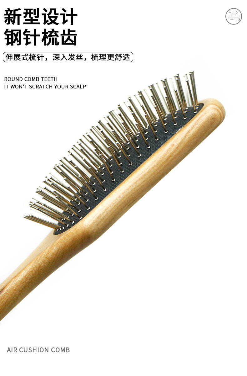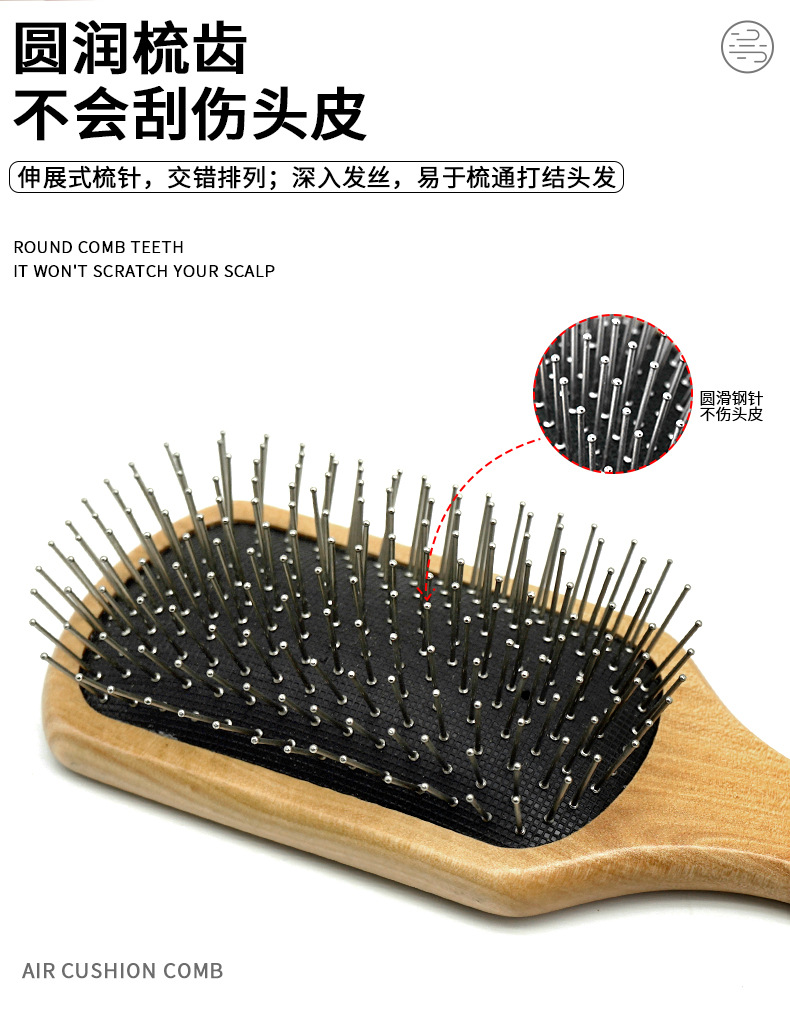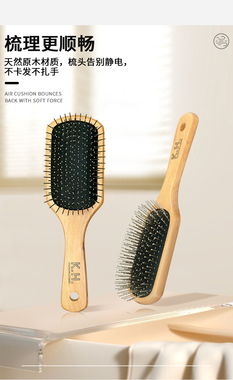 高颜値木质エアバッグ櫛女の子カール顺髪クッション櫛マッサージ頭皮櫛家庭用ヘアケア櫛