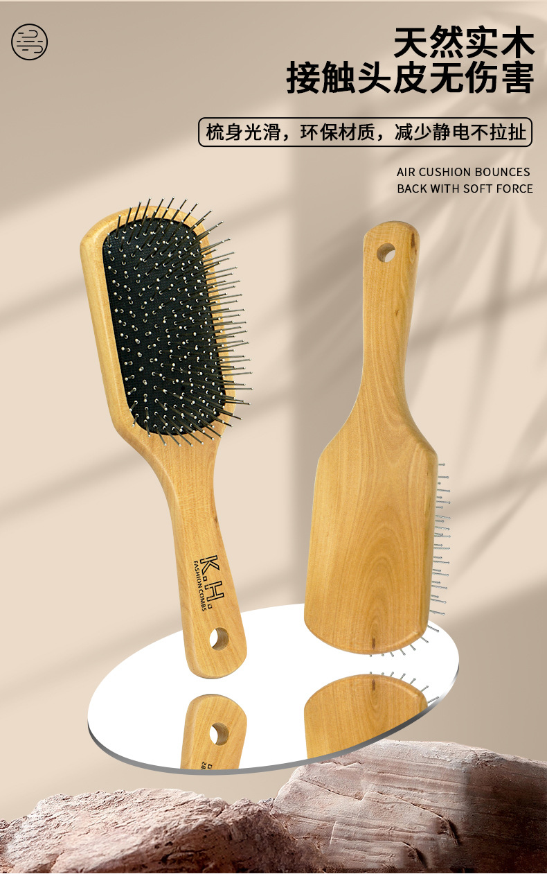 Kh丽娜木製マッサージ頭皮櫛エアマット木歯櫛エアバッグ櫛美容ヘアケア現物メーカー直供