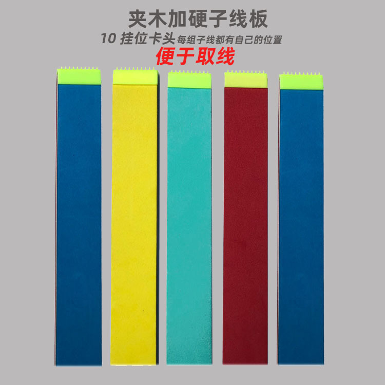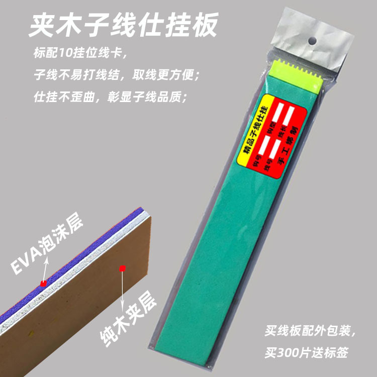 产品介绍:此线板二面用泡沫片粘贴中间有木板加固,边角平整光滑,使线板挂线受力时不易弯曲、轻便、不易变形,子线有序排列。(颜色随机)凡在本店购买所有夹层子线板均有免费外包装袋赠送,产品升级加硬,线板更加牢固,线板做工更加精细,表面光滑,尺寸均匀,中间层三合板加固,坚硬,轻便。店家承诺收到货如有少货破损的一律包换;让每一个客户感受到真正的售后无忧,一家以客户满意为中心,产品质量为导向的厂家。注:所有尺寸配新款分线器,同款线板混批满300片送仕挂线号钩号标签,目前分线器为新款,老款已不做,拍之前请确认新款分线器是否可以用。