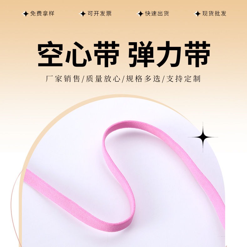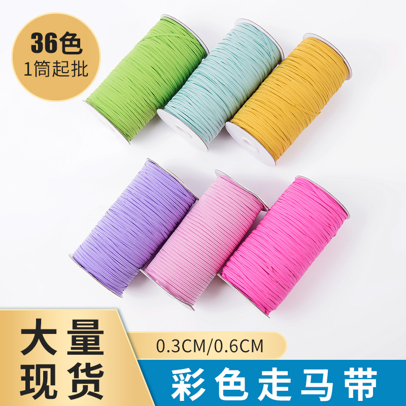 现货批发6mm彩色松紧带 袖套口罩扁窄跑马松紧带 捆装走马带