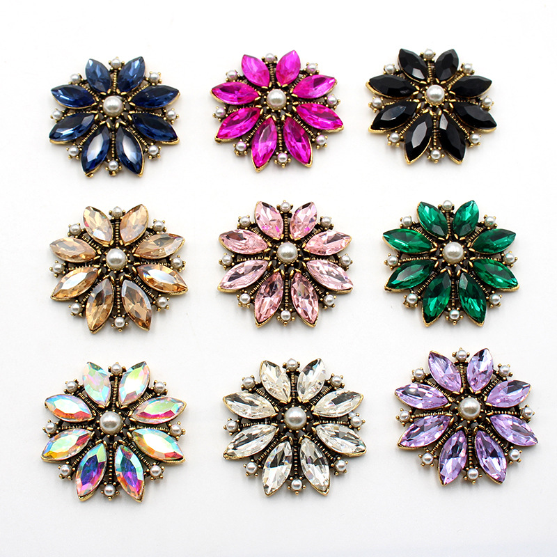 メーカー卸売り28mmアクセサリー花形ドリルガラスボタンDIY手作りドリル装飾ボタンシャツ