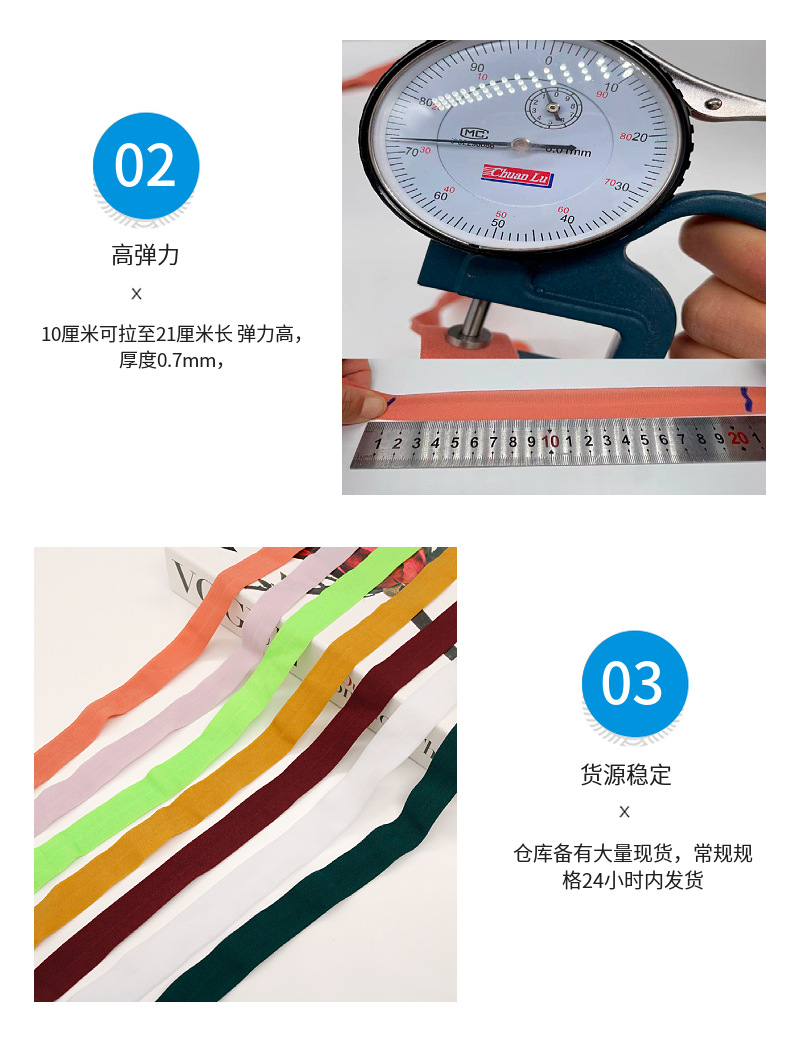 1cmカラー現物スパンデックスの縁の弾力帯を包んだ後に、襟を押さえて下着のゴムバンドをつけます。