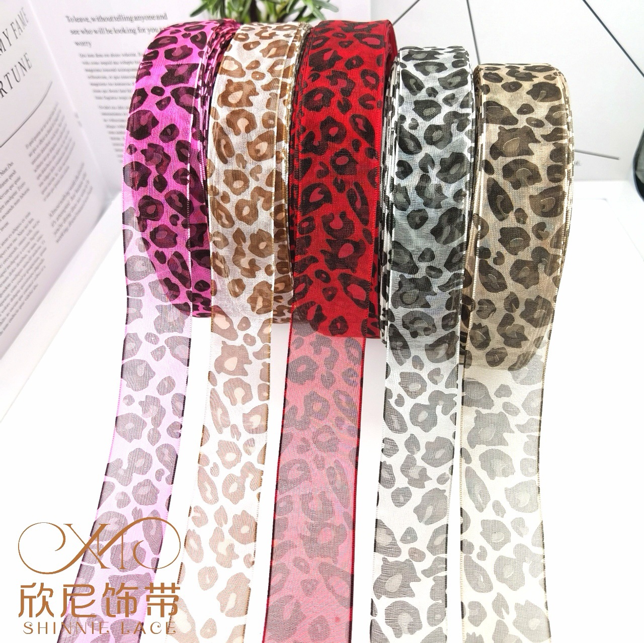 2.5cm韓国版太縁豹紋紗帯服装花束ケーキプレゼント飾りリボン髪飾り玩具飾り帯