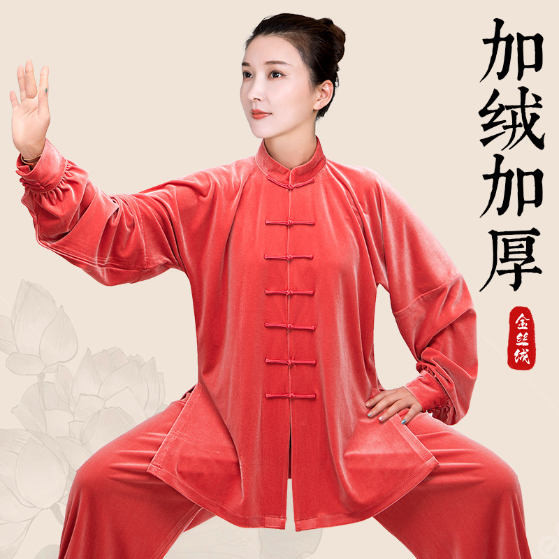 太極服の女性の新型のハイエンドの金のベルベットの秋冬は太極拳を厚くして男性の武術の服装の春秋服を練習します。