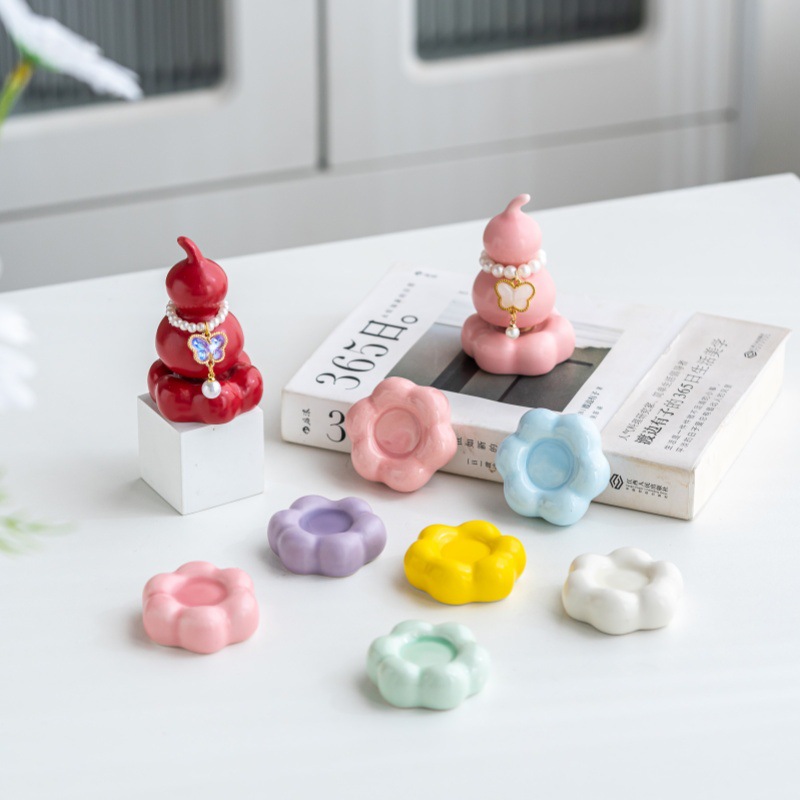 夜市爆款转转乐花朵陶瓷实心底座加旋转轴承可爱工艺品陶瓷小配件