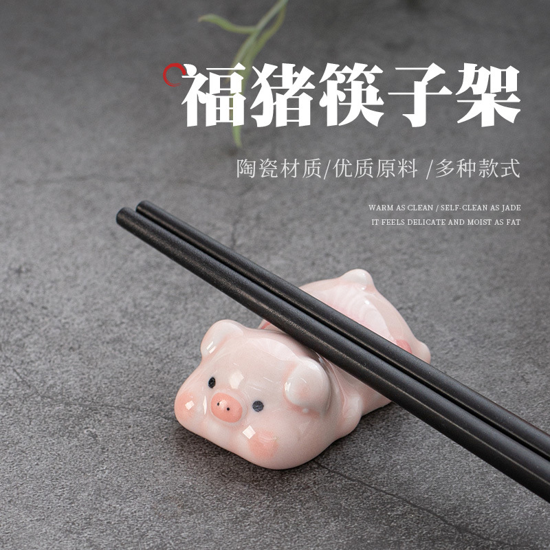文创陶瓷筷架 卡通可爱猪粉色动物陶瓷筷子架筷拖摆件礼品伴手礼