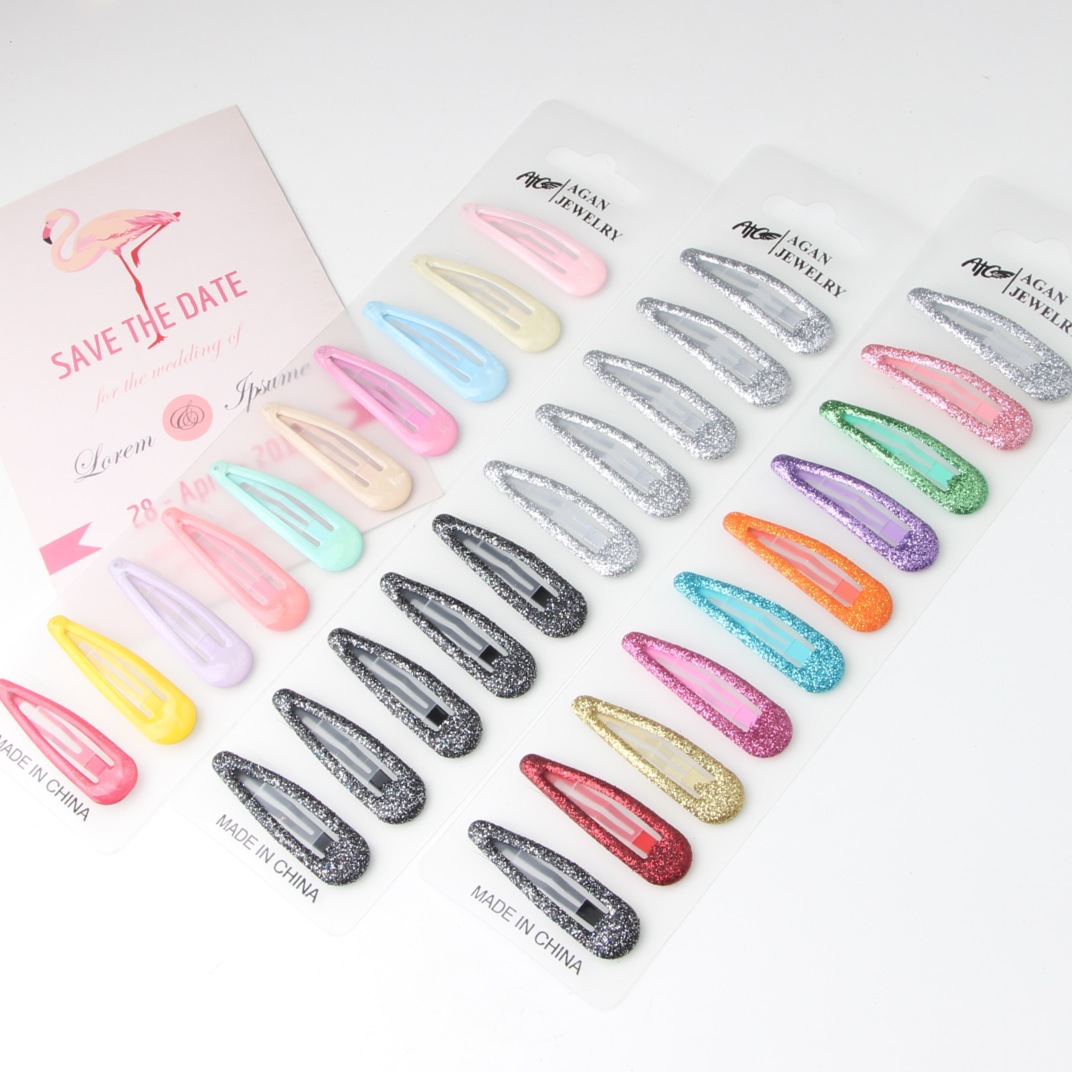 韓国式シンプルカラー子供用ヘアピン焼き塗料5cmbbクリップ前髪クリップネット赤水滴クリップ金属エッジクリップ