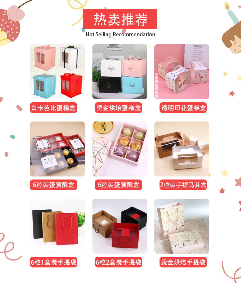 手提げケーキケース4/6/8/10インチ箔押し手提げ誕生日ケーキ焙煎食品包装ケース卸売り