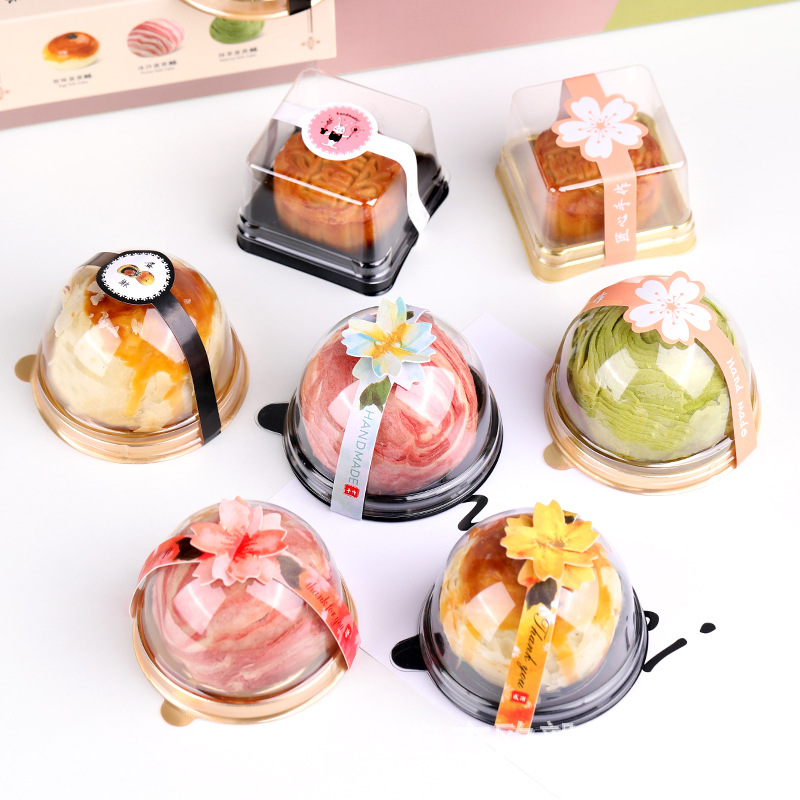 金黒色卵黄ショートニング円形プラスチックブリスターボックス月餅托雪媚娘透明使い捨て焙煎包装箱