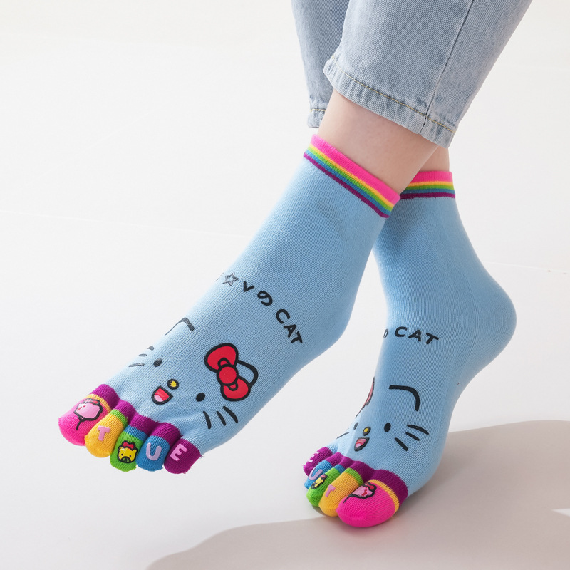 【产品名称】卡通表情五指女中筒袜
