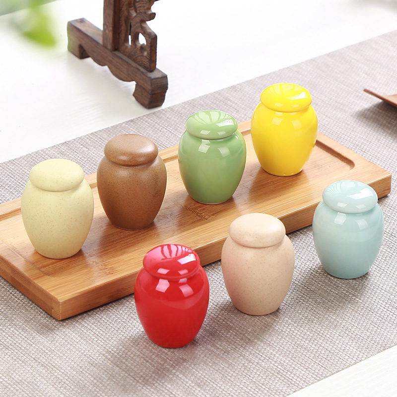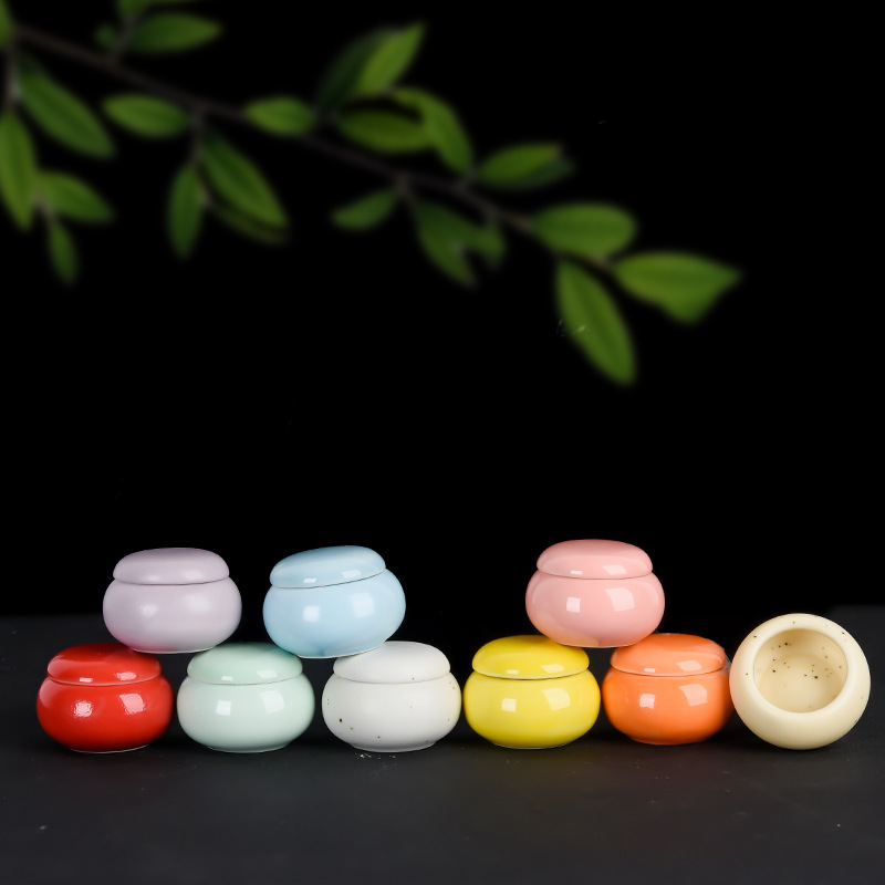 小型ミニ茶葉缶陶磁器美化粧リップクリーム缶色釉薬粉缶クリーム密封貯蔵タンク
