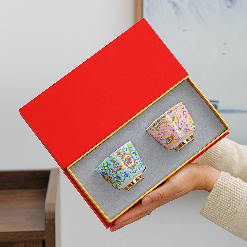 エナメルカップカップルカップ羊脂玉品茗杯主人カップ家庭用工夫カップ一人でお茶陶磁器カップを飲む