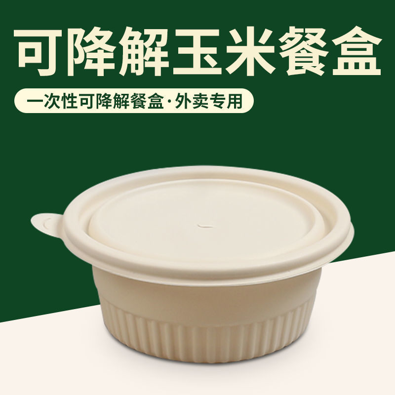 分解性環境保護ランチボックス使い捨て梱包ボックス円形蓋付き厚さ1000mlコーンスターチの出前ボウル