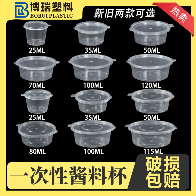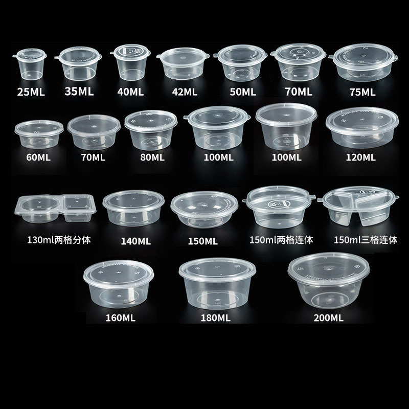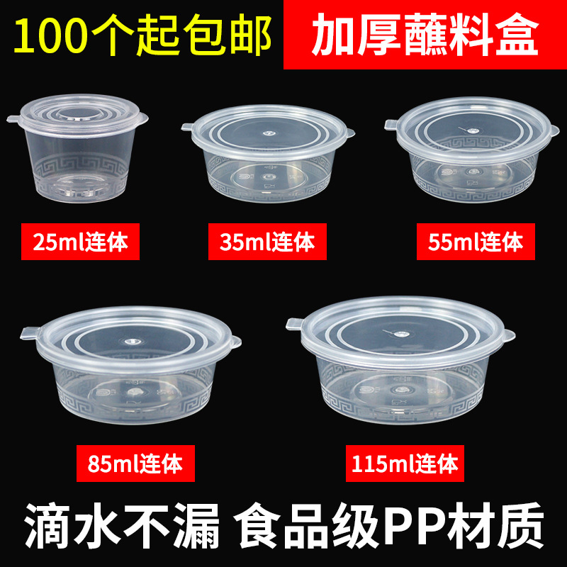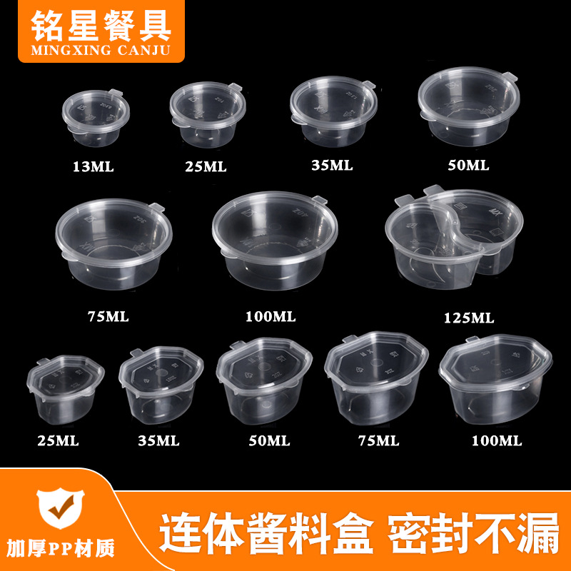 使い捨てソースカップ蓋付き連体別透明ppプラスチックの出前包装密封円形調味料箱卸売り