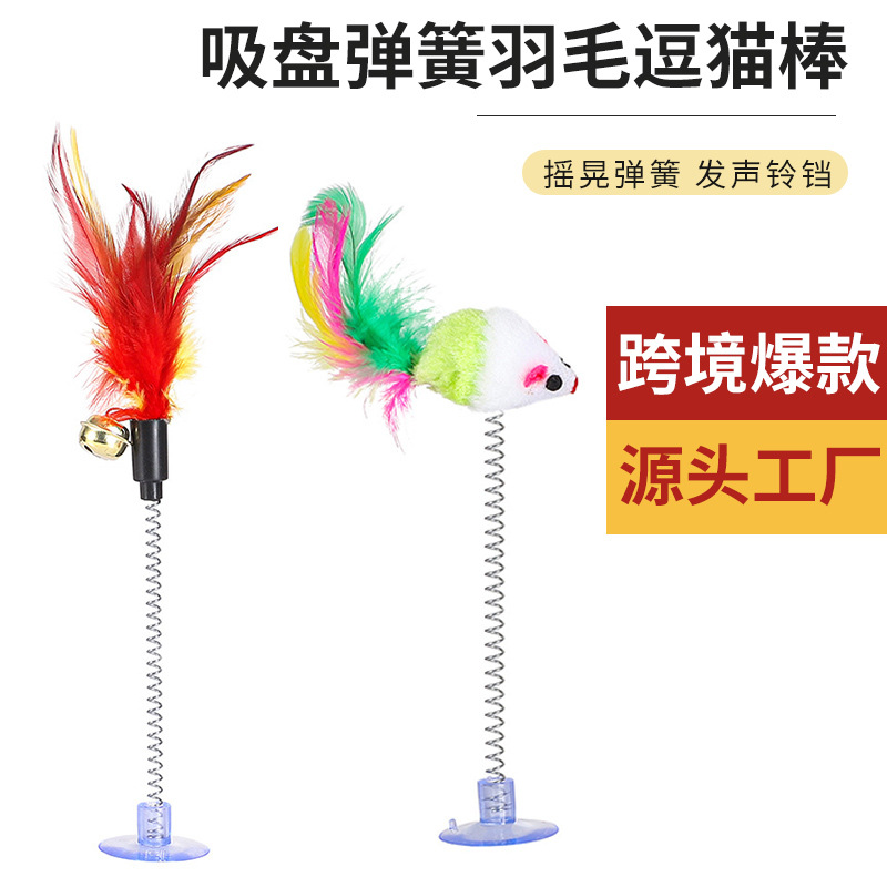 【产品特点】: 可以吸附在光滑表面,桌子上 地板上,固定起来,猫咪玩着更方便,可以随时移动位置。也可以拿在手里逗猫咪,毛毛老鼠带有柔软的鸡毛,更是猫咪们的喜爱。,弹簧弹性好,挥杆自如家中准备不同逗饵的逗猫棒,天天陪伴爱猫,让猫咪焕发活力,增强人宠之间的感情和猫猫互动起来更有趣,此款逗猫棒,猫咪爱不释手。