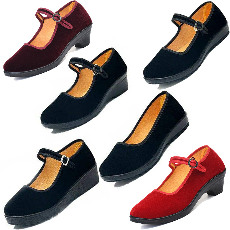 経典の古い北京の布の靴の女性の靴の黒色の仕事の靴のホテルの職業の女性の靴の平毛の広場のダンスの代行