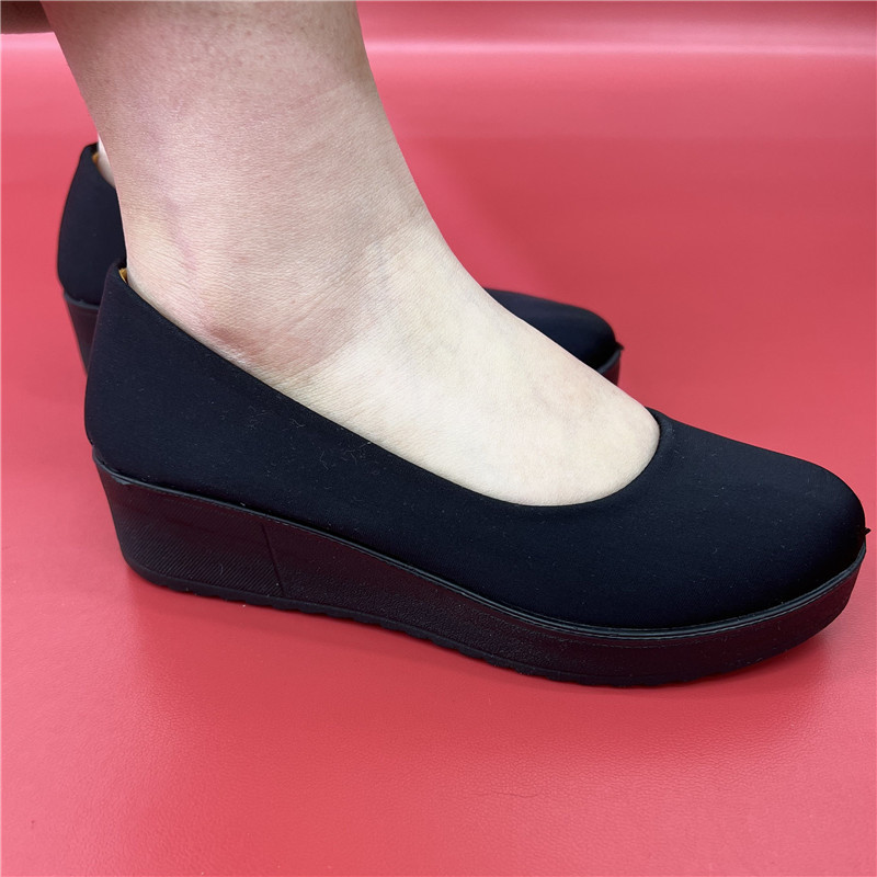 布製の女性用靴、厚底、フラット、浅口、ホテルの作業靴、ダンスシューズ、ウェッジヒール、黒、通気性、軽量