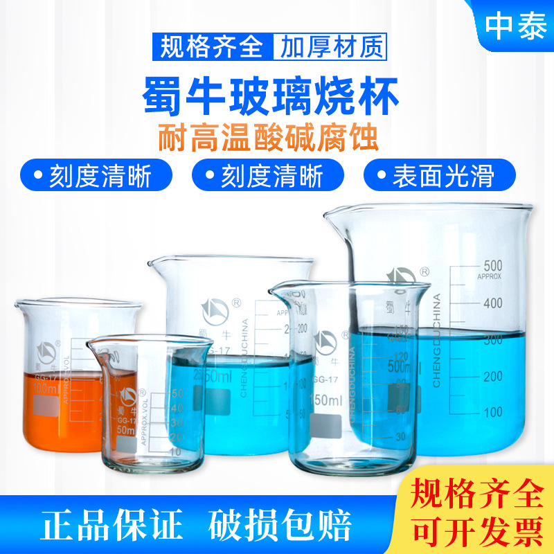 蜀牛ガラスビーカー500ml耐高温化学実験室器材計量筒低型計量カップ高ホウ素シリコン厚さ