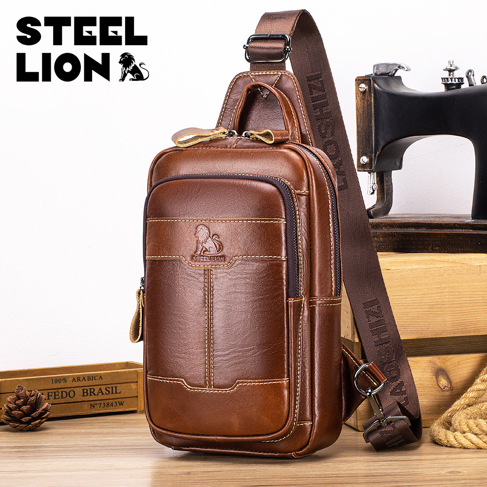 STEEL LION 牛革チェストバッグ メンズ 一層牛革 オイルワックスレザー おしゃれ メンズチェストバッグ シングルショルダー クロスボディバッグ