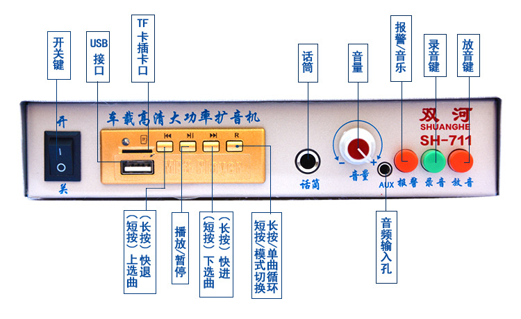 カラー 711標準版12ボルト拡声器 (スピーカーを持参する必要があります),711高圧版12-60ボルト拡声器 (スピーカーを持参する必要があります),711 高電圧バージョン、ディスプレイ付き 12 ~ 60 ボルトのアンプ (スピーカーはご持参ください),711 bluetooth版ディスプレイ付き12-60ボルト拡声機 (スピーカーを持参する必要があります)