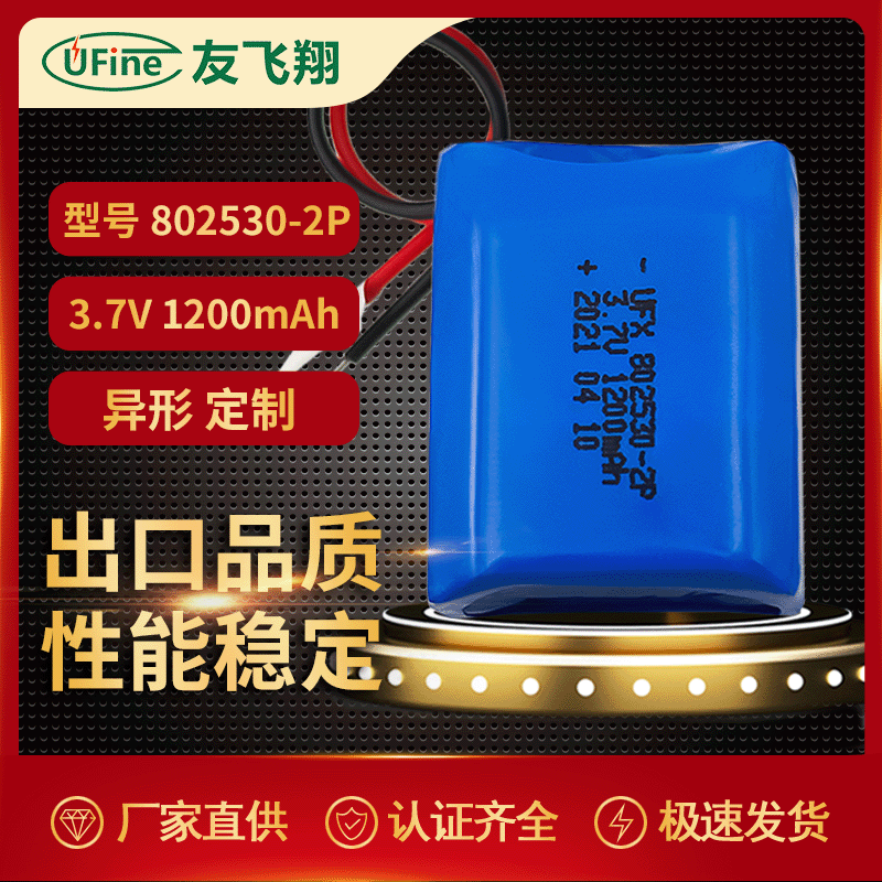 UFX802530-2P 1200mah 3.7v bluetoothスピーカー、美容器電池