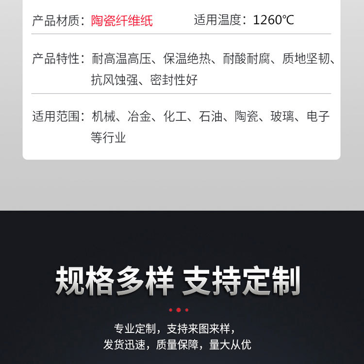 1260シリカアルミナセラミックファイバーペーパー、高温耐性、断熱、絶縁、シール、防火、難燃性素材、カスタム断熱綿