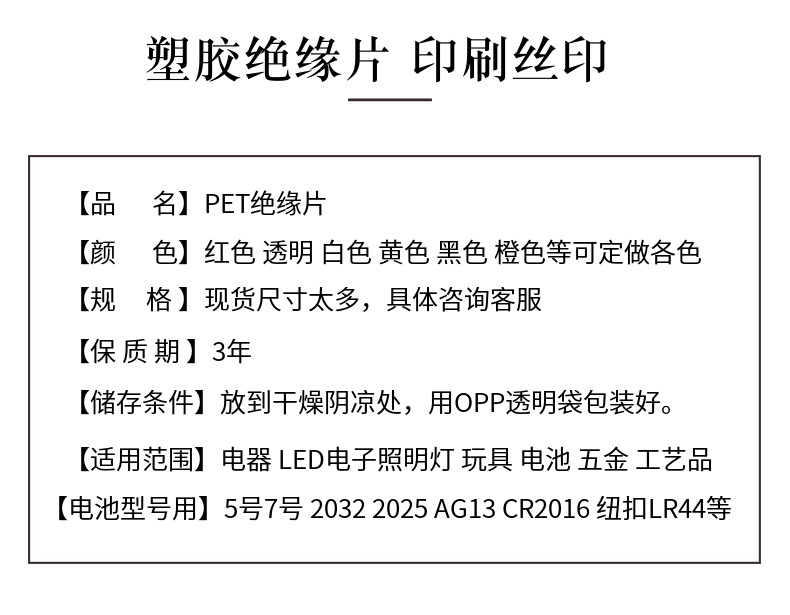 赤色PET印字麦拉片絶縁5号ag 13電池7号玩具隔電片モータ膜プラスチックインサート