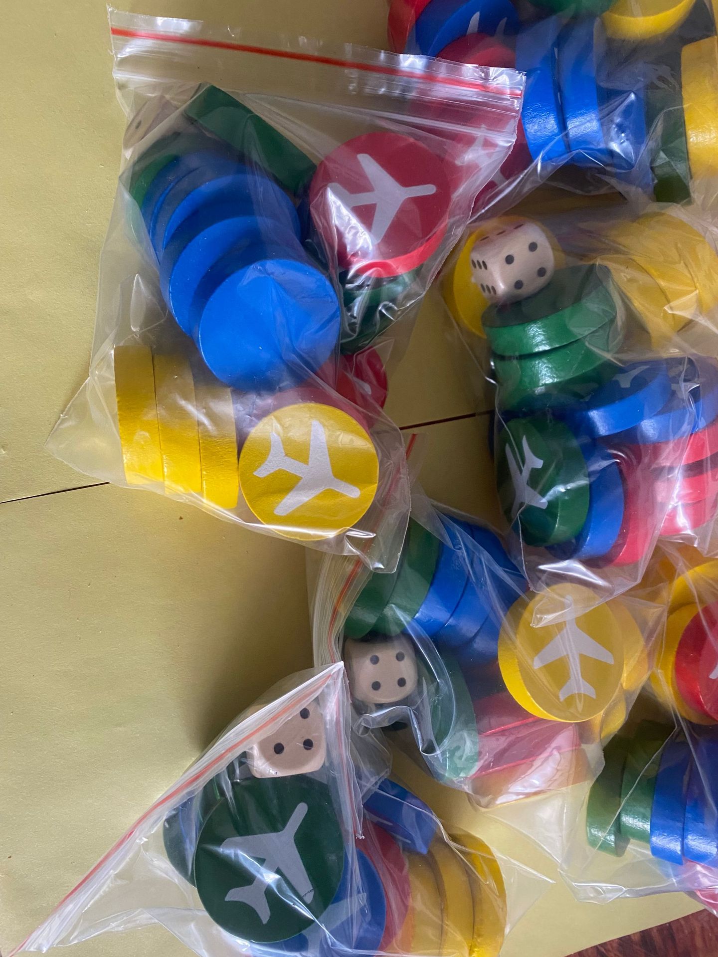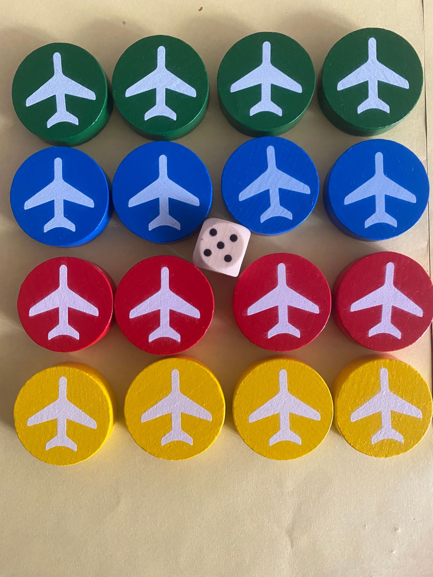 棋子均为4种颜色棋子各4个加一颗20mm的骰子