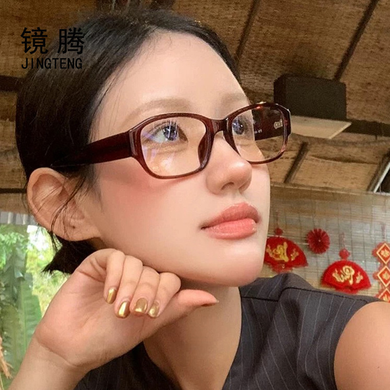 アンクラの赤いメガネフレームの女性の高級感2025新型韓国の素顔のシンプルな四角いフレームのブルーレイ防止