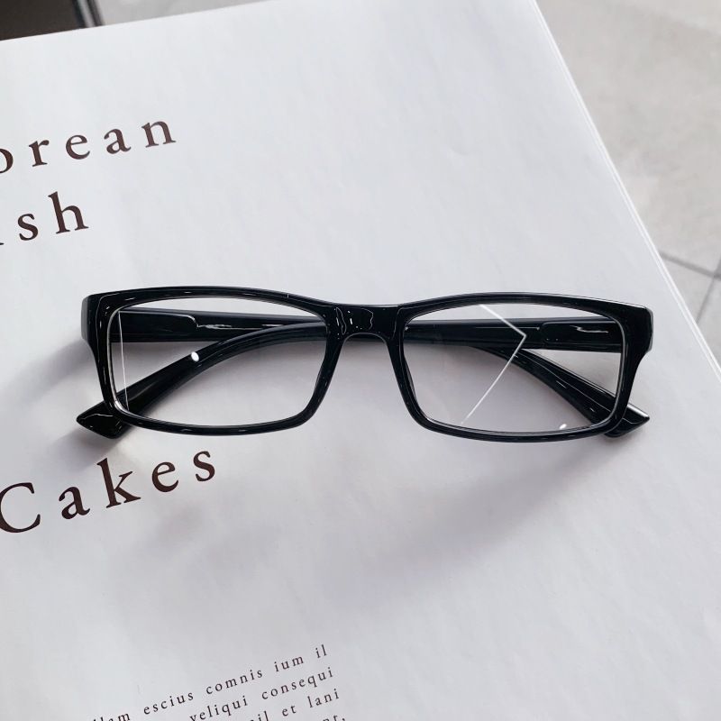 レトロスクエアフレームメガネブラックブラックフレームスクエアcos二次元超透明フラットミラー複数の度数選択近視メガネ