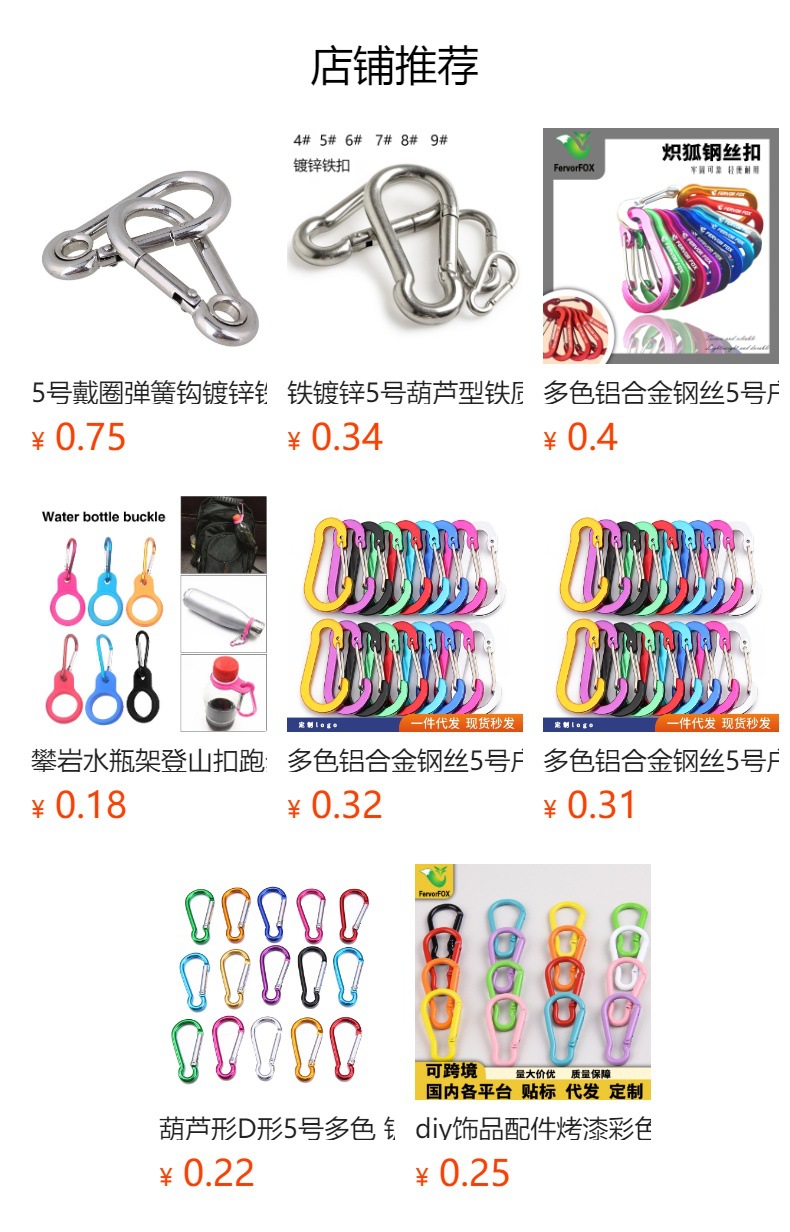 葫芦形D形5号多色 钥匙扣 水壶扣 背包扣 铝合金快挂便携登山扣