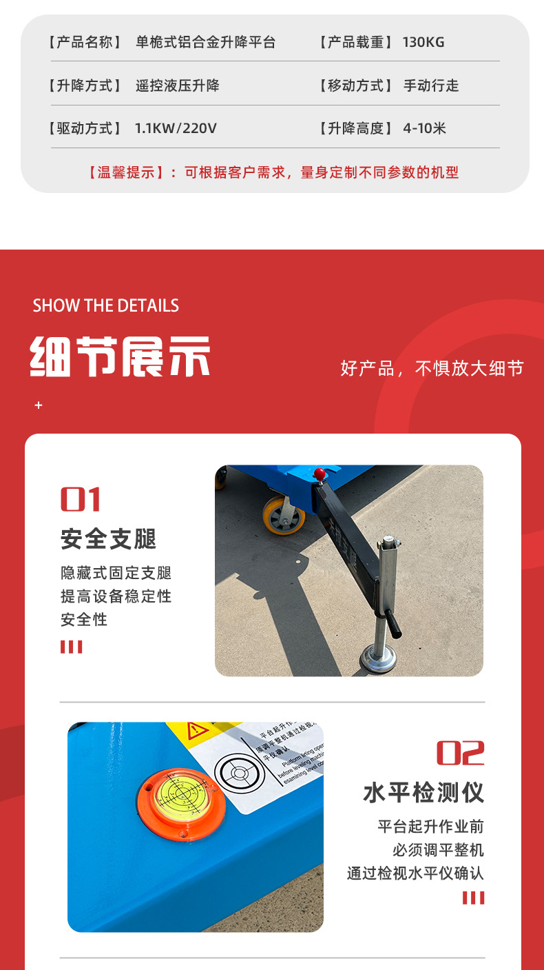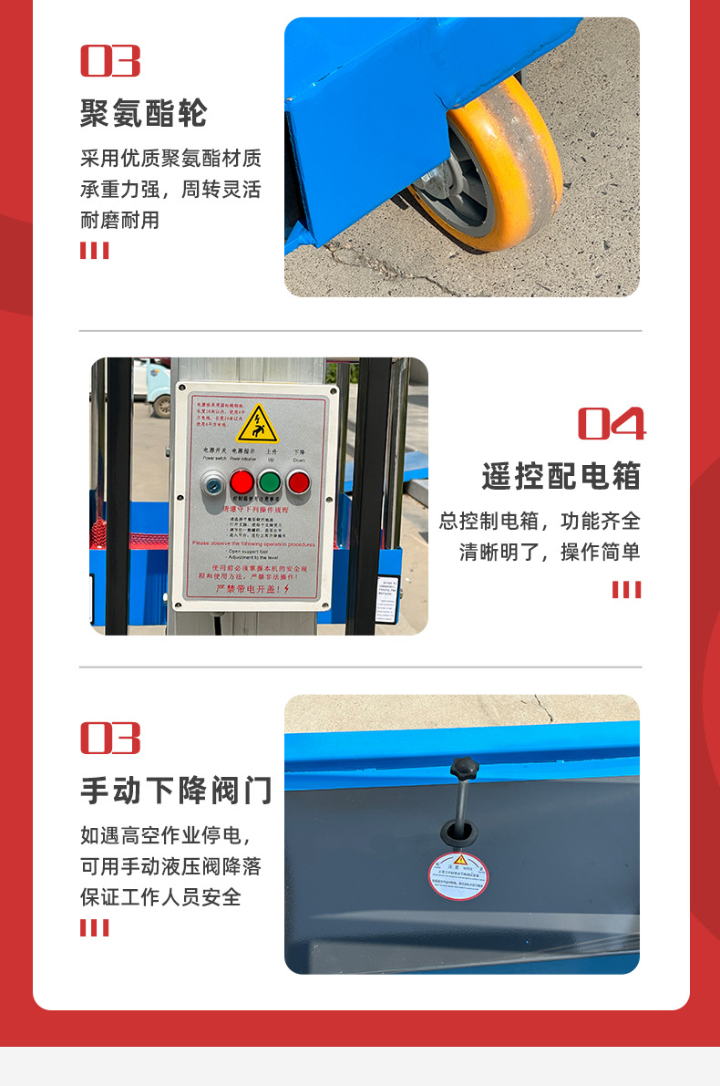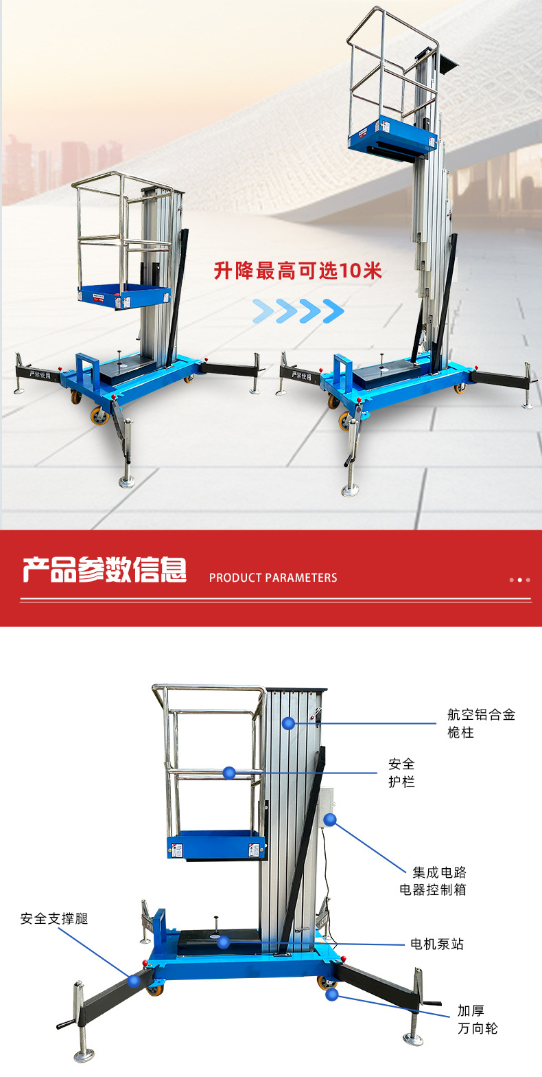 単柱双柱油圧昇降プラットフォーム移動式電動軽量高所作業プラットフォームアルミニウム合金昇降機