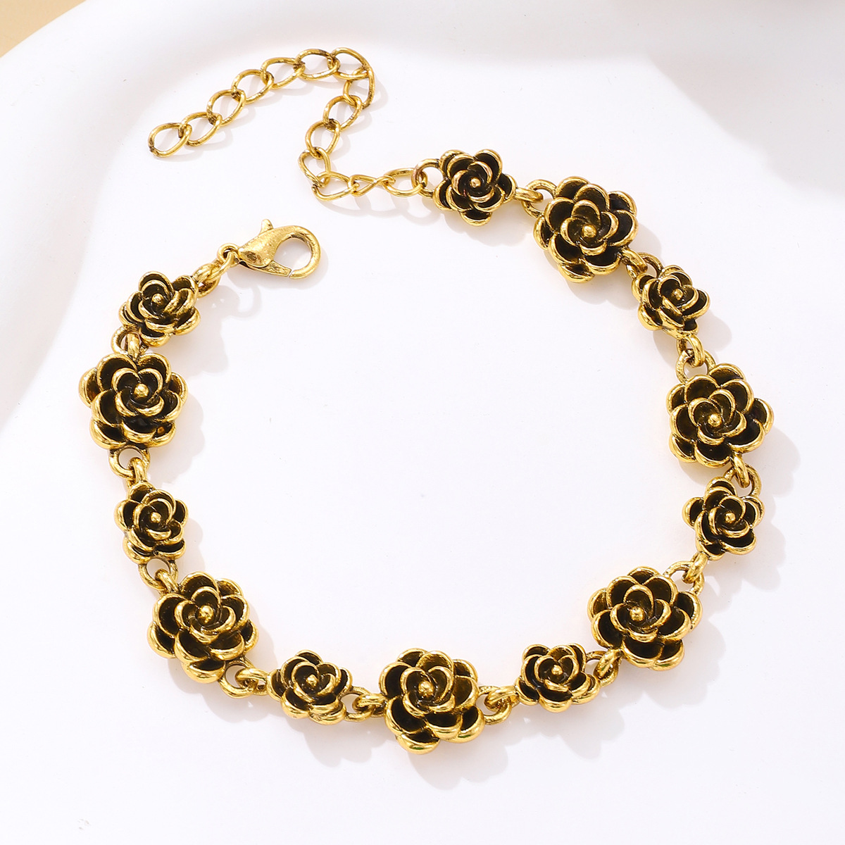レトロ古いバラのブレスレット女性ins風欧米デザイン感合金花手環気質手飾り卸売り