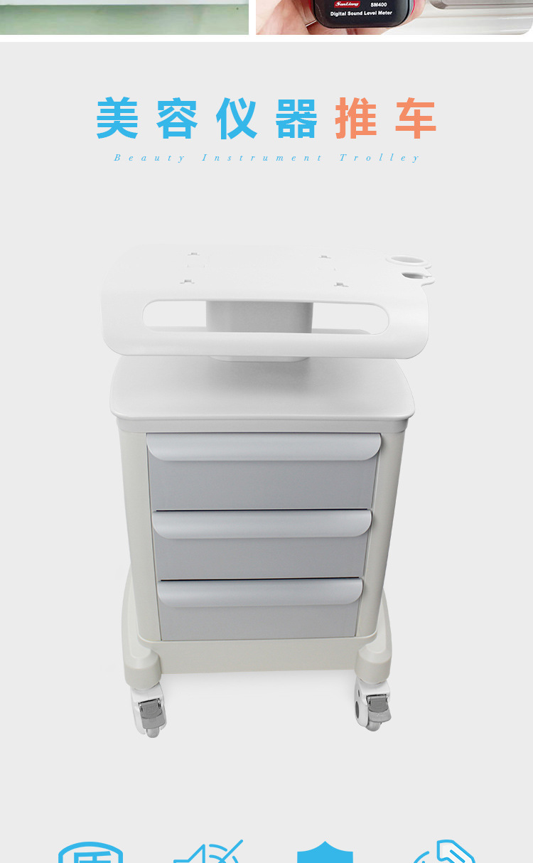 美容院用カートプラスチック三段引き出し付き棚美容機器置き用移動カート卸売り